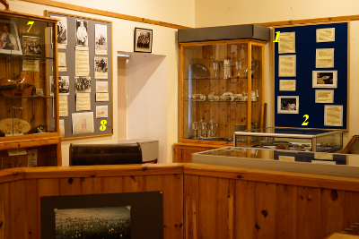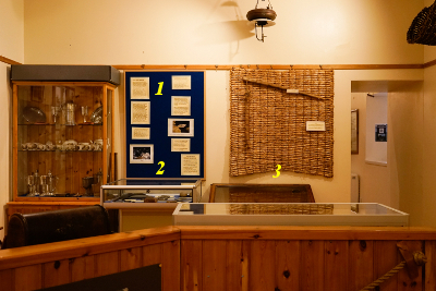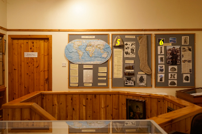 At the top of the stairs a number of permanent displays can be found along with information about the changing exhibition. The permanent displays of famous sons of Northmavine is joined by exhibits showing early history from the neolithic period on loan from the Shetland museum, these adding to items from Tangwick Haa’s collection.